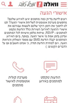 "Walla! Wedding" on edistyksellinen työkalu, joka opastaa sinua täydellisen tapahtuman, kuten häiden, Bar Mitzvan tai polttareiden, suunnittelussa. Se tarjoaa kaikki tärkeät tiedot ja innovatiiviset työkalut tapahtumasi tehokkaaseen hallintaan.