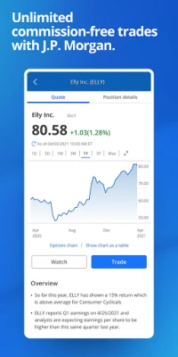 **Chase**-sovellus pitää turvallisuuden prioriteettina. Saat ilmoituksia epätavallisista korttiostoista ja voit lukita tai avata korttisi suoraan sovelluksessa, tuoden mielenrauhaa jokaiseen päivään. Suunnittele tulevaisuuttasi ja hallinnoi sijoituksiasi vaivattomasti. Hyödynnä $0 verkkovälityspalkkion osake-, ETF- ja optio-ostoissa. Aseta ja seuraa tavoitteita J.P. Morgan Wealth Plan -työkalulla ja varaa tapaamisia talousneuvojan kanssa. Lisäksi voit seurata ja lunastaa palkkioitasi sekä ansaita tilihyvityksiä Chase Offers -tarjouksilla.