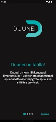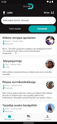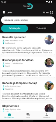 Duunei yhdistää paikallisesti avuntarvitsijat ja osaajat. Tarjoa taitojasi, löydä apua tehtäviisi ja ansaitse vaivattomasti. Duunei tekee osaamisen jakamisesta ja löytämisestä helppoa yhteisössäsi.