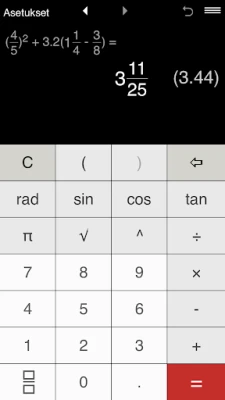 Syvenny syvemmälle matemaattiseen maailmaan Laskin-sovelluksen edistyksellisten ominaisuuksien avulla. Laskin ei kaihda haasteita, vaan se tukee sulkeita sisältäviä laskutoimituksia, varmistaen operaatioiden oikean järjestyksen joka kerta. Tarvitseeko sinun laskea potensseja, jopa negatiivisia? Laskin suoriutuu siitäkin leikiten. Ja koska tarkkuus on usein avainasemassa, voit vaivattomasti mukauttaa näytettävien desimaalien määrää tarpeidesi mukaan. Oletuksena Laskin näyttää kaksi desimaalia, mutta voit hienosäätää asetuksia vapaasti täydellisen tarkkuuden saavuttamiseksi.